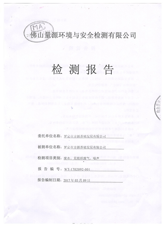 羅定市方源養殖發展有限公司環保檢測信息公開