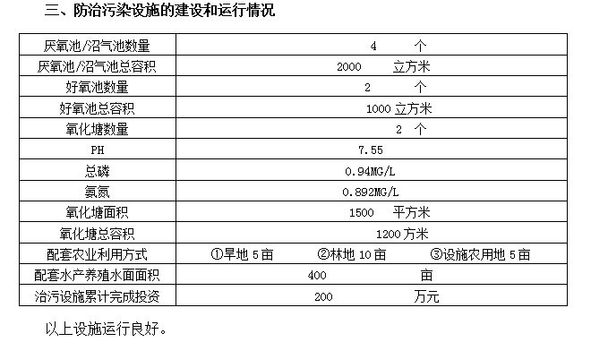 本項目廢水采用“隔渣廢水-調節池-厭氧反應池-好氧池-沉淀池-消毒池-水庫-灌溉還田”工藝對養豬廢水進行處理,不但可以實現廢水的達標排放,并且能產生一定的社會經濟效益,實現社會、經濟、環境的可持續發展。