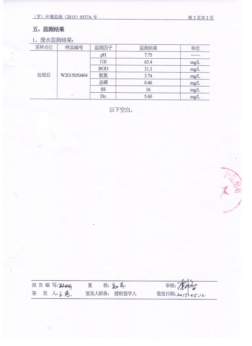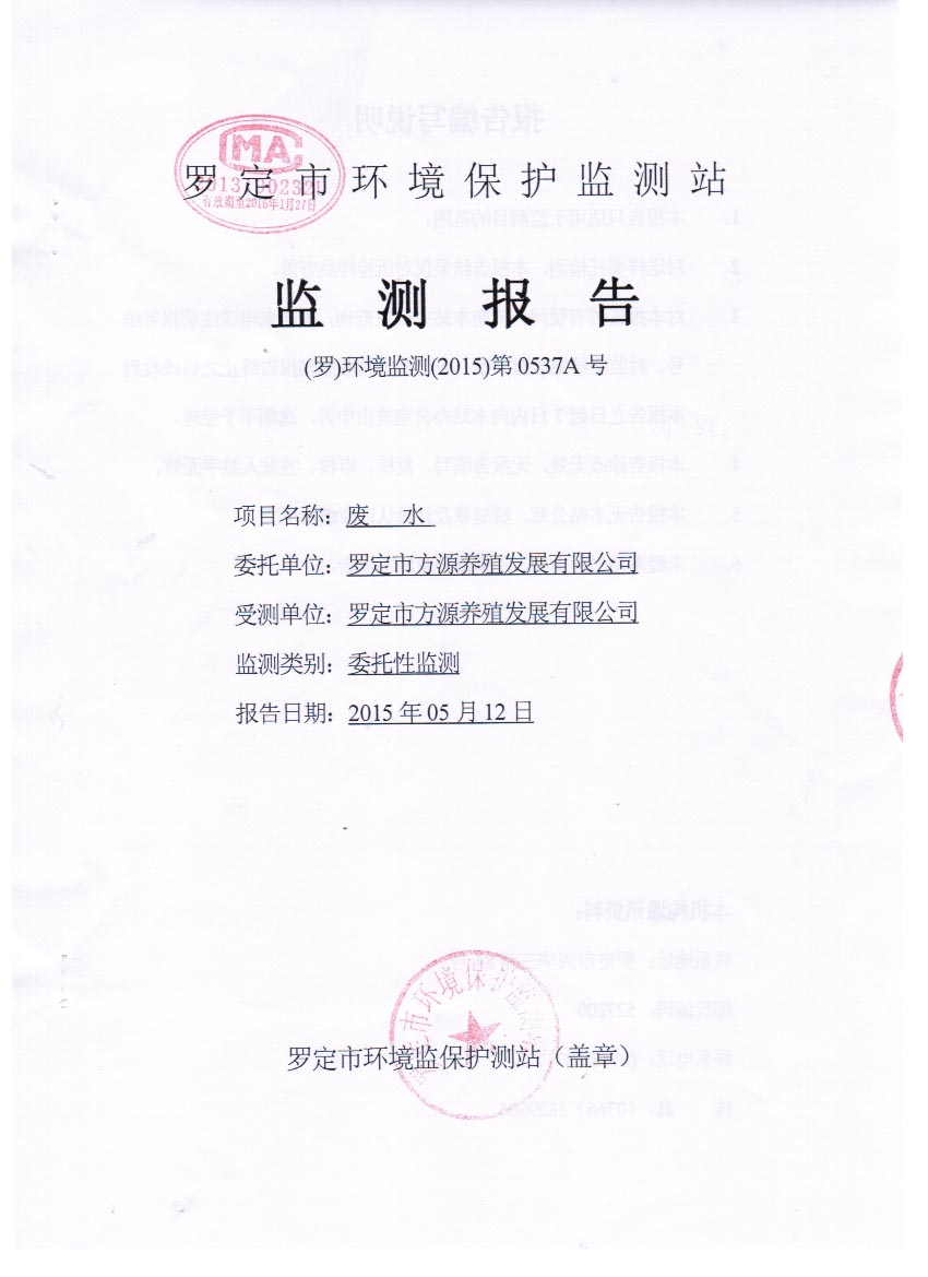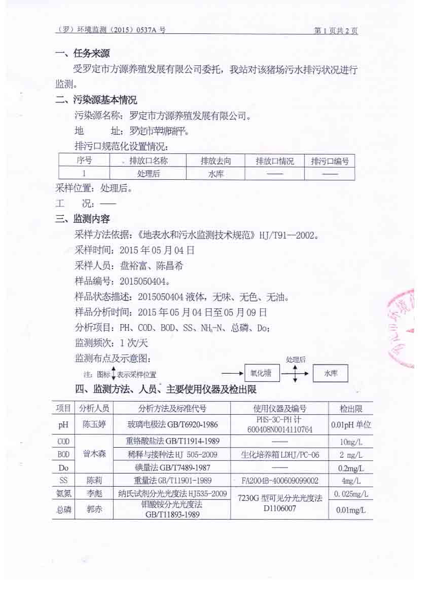 羅定市方源養殖發展有限公司2015年5月監測報告