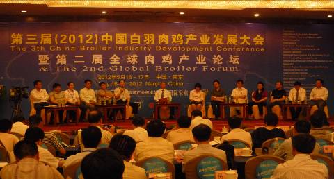 2012年5月15日—17日在中國南京舉行的“第三屆(2012)中國白羽肉雞產業發展大會暨第二屆全球肉雞產業論壇”會議圓滿結束。本次會議上,圣農發展的李文跡總經理、益生禽業的曹積生總經理、國家肉雞產業技術體系首席科學家文杰等行業精英們對肉雞產業的歷史、現狀及發展方向作出了科學的分析。同時,行業的企業代表們還針對“現階段中國肉雞養殖疾病防控中預防性投藥的利與弊”及未來我國肉雞養殖主要模式是“一體化模式”還是“公司+農戶”模式進行了精彩的辯論。