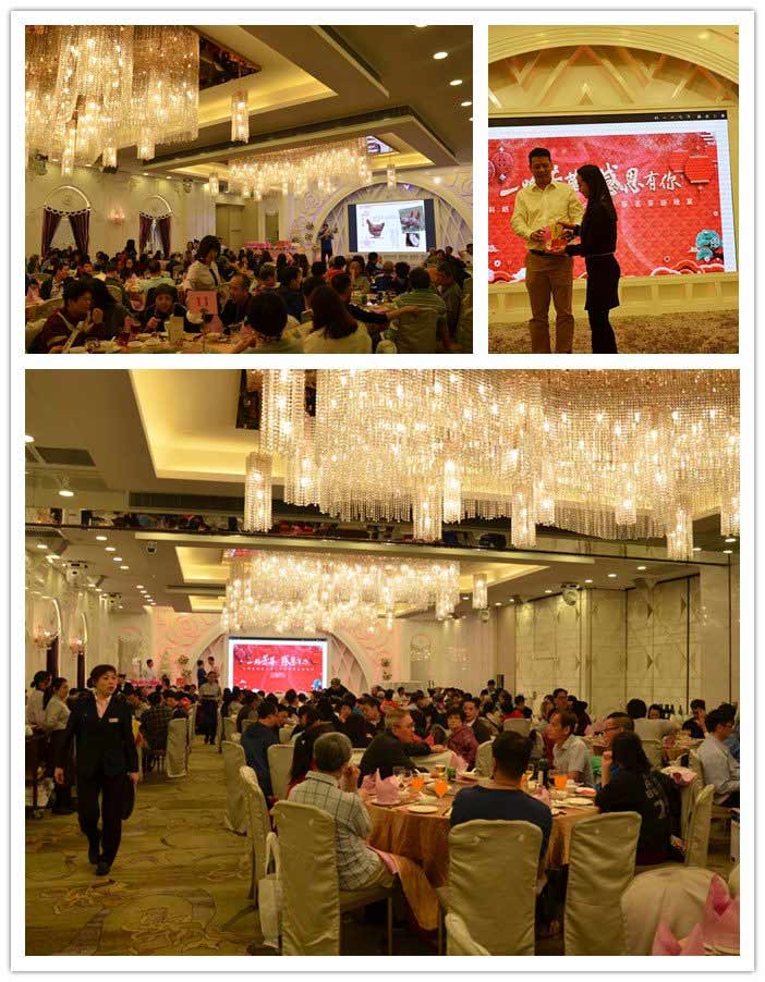 3月26日晚,科朗全資子公司香港科朗在香港名門燕客酒樓隆重舉辦春茗晚會暨新產品推介會,集團總裁鄭秋煊先生攜夫人、香港公司總經理謝瑛妮女士、公司戰略合作伙伴香老板、連老板、農場合作伙伴、公司客戶齊聚一堂,共品佳肴,共話藍圖。